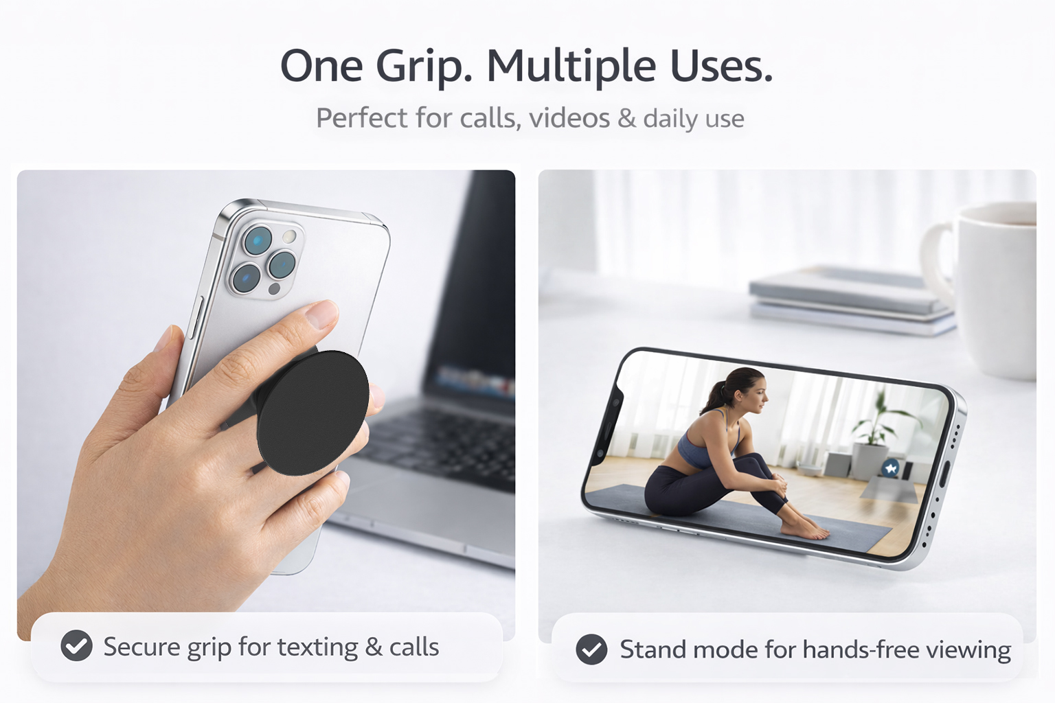 • Multi-Functional – Also known as a cell phone holder, phone grip, phone stand, or phone gripper for back of phone.